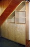Mansardenschrank für ein Büro, die schrägen Türen haben meist Weitwinkelbänder